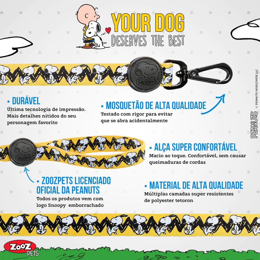 Feito com a última tecnologia de impressão, as Guias, e todos os acessórios Zooz Pets tem um design marcante, divertido e com super nitídez do personagem Snoopy.