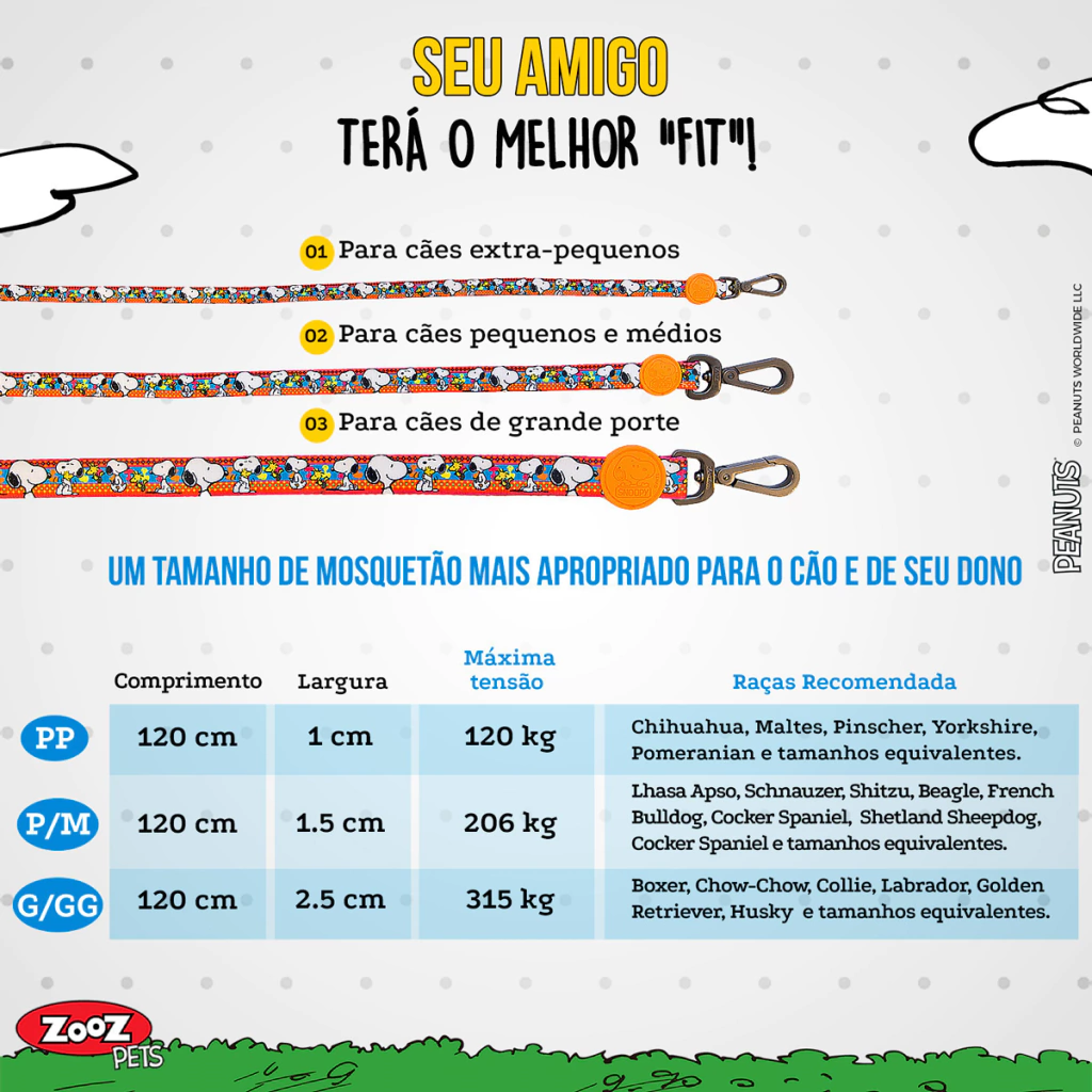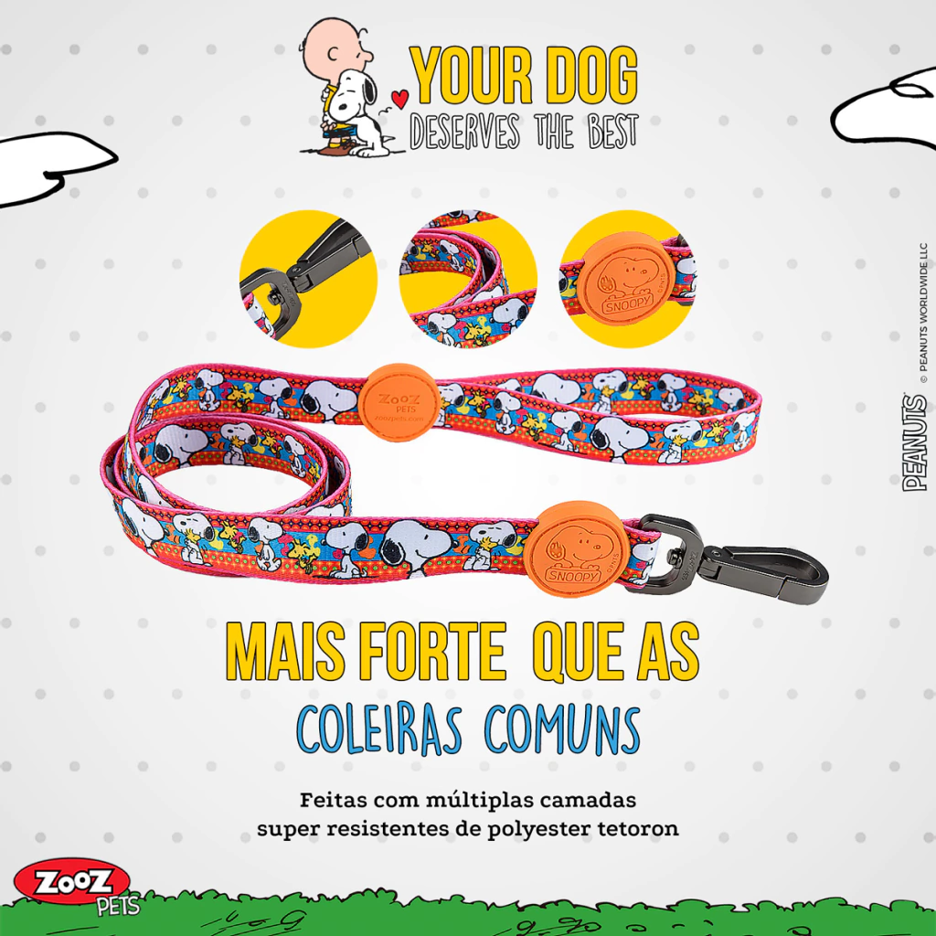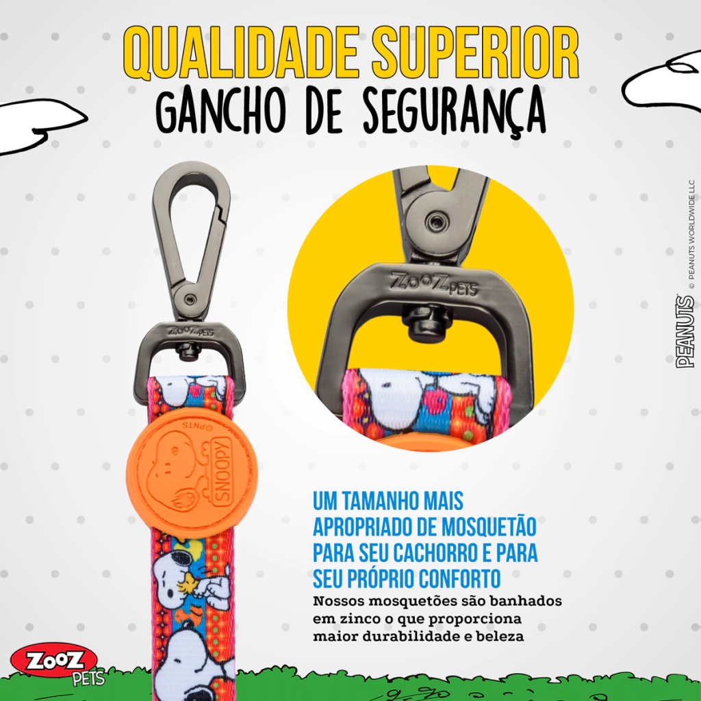 Feito com a última tecnologia de impressão, as Guias, e todos os acessórios Zooz Pets tem um design marcante, divertido e com super nitídez do personagem Snoopy.
