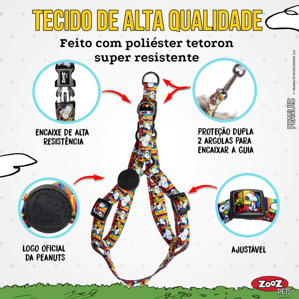 Feito com a última tecnologia de impressão, as Peitorais, e todos os acessórios Zooz Pets tem um design marcante, divertido e com super nitídez do personagem Snoopy.