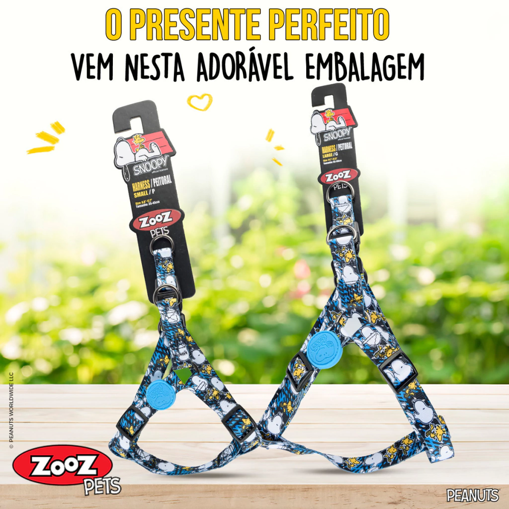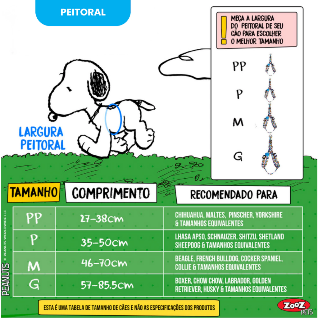 Feito com a última tecnologia de impressão, as Peitorais, e todos os acessórios Zooz Pets tem um design marcante, divertido e com super nitídez do personagem Snoopy.